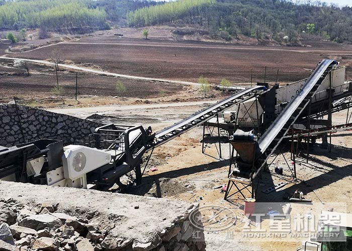 时产90吨流动一体式石子破碎机作业于辽宁/鞍山
